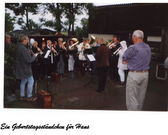 Am 23. Juni waren wir dann bei unserem ehemaligen Mitspieler Herbert Hanno eingeladen, der seinen 80. Geburtstag feierte und sich ein Ständchen von uns wünschte. Klar, das wir diesem Wunsch nachgekommen sind das Geburtstagskind und seine Gäste mit flotten Stücken unterhielten. Anschließend gab es Kaffee und ein leckeres Tortenbuffet – natürlich gern genommen.