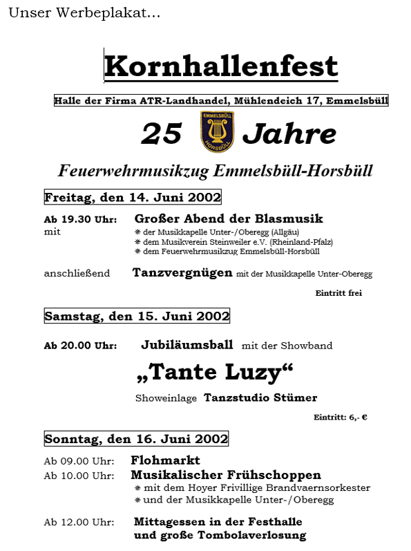 Die Freunde aus Hoyer erhalten Besuch von einer Feuerwehrkapelle aus Kopenhagen. Spontan wird von den Hoyeranern und den Emmelsbüllern ein Konzert auf Drei-Harde-Eck organisiert. Mit den mitwirkenden Orchestern Kopenhagen, Hoyer und Emmelsbüll und dem Feuerwehrchor Emmelsbüll wird es die mit Abstand schönste Veranstaltung des Jahres.