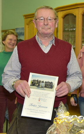 Im Rahmen der diesjährigen Jahreshauptversammlung am 09. Januar gab es neben den üblichen Regularien eine ganz besondere Ehrung. Fritz Jessen hatte zum Ende des letzten Jahres seine aktive Zeit als Bläser im Orchester beendet.