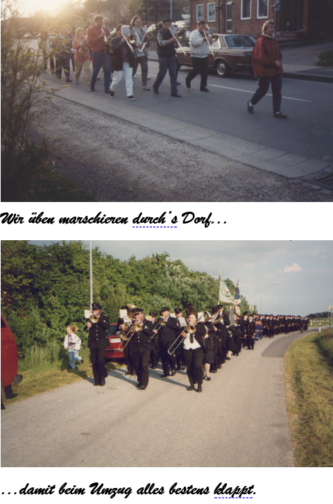 Der Bekanntheitsgrad des Musikzuges vergrößert sich. Die Auftritte führenden Musikzug jetzt auch in die weitere Umgebung, z. B. nach Süderlügum oder Stedesand.