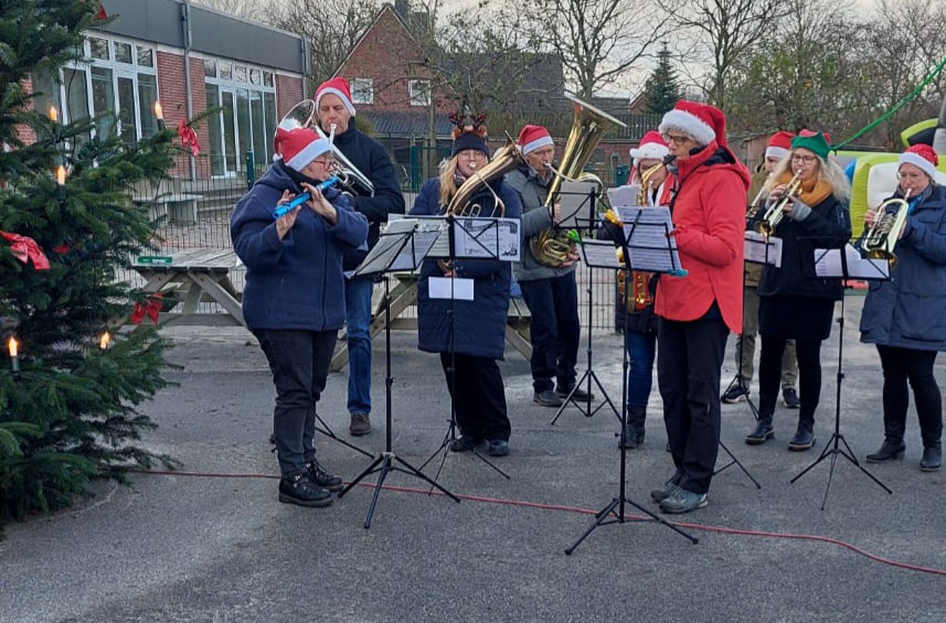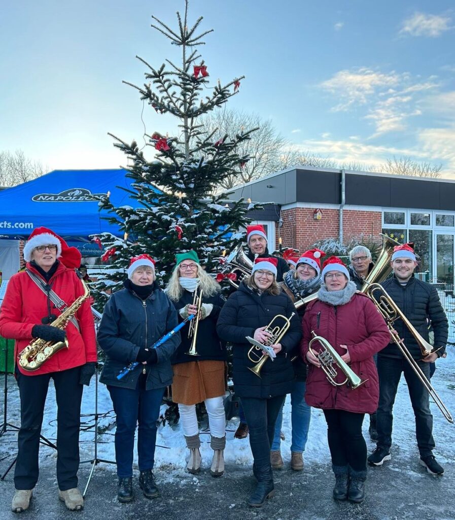 Musikalische Begleitung beim Einzug des Weihnachtsmannes auf dem Rathausplatz in Niebüll
