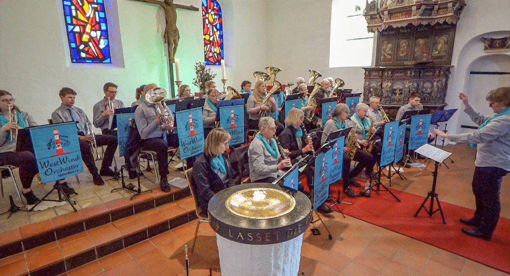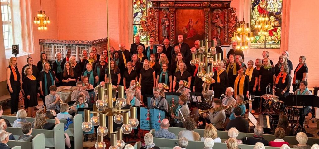 Ein besonderes Ereignis am 2. Juni – zwei Orchester mit sehr viel Spaß an der Musik und eine nahezu voll besetzte Christuskirche in Niebüll – das gemeinsame Konzert des 1. Harmonika-Club Niebüll und dem WestWind-Orchester Südtondern. Nach der Begrüßung spielten beide Orchester zusammen das wunderschöne Stück „Sound of Silence.“ Danach spielte das WestWind-Orchester u.a. Stücke von Jon Bon Jovi, Coldplay, Westernhagen und einige weitere tolle Stücke. Nach einer ganz kurzen Umbaupause übernahm dann das Harmonika-Orchester mit Musik von Santiano, Filmmusik aus Fluch der Karibik, dem Kaiserwalzer und dem Hexenritt. Beide Orchester durften sich einen sehr großen Applaus von den begeisterten Zuhörern abholen. Einen verdienten Sonderapplaus gab es für die beiden musikalischen Leiter Monika Fischer (WWO) und Martin Gehrke (HCN), die die Orchester für dieses Konzert bestens vorbereitet hatten! Nach einer Zugabe durch beide Orchester endete dann ein sehr schöner musikalischer Abend und die Zuhörer gingen beschwingt und gut gelaunt nach Hause.