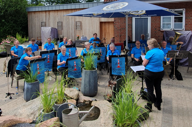 Zum Sommerfest besucht die Musikkapelle „Frei Weg“ aus Mülheim denMusikzug. Mit der Kapelle wurde bei der 75-Jahr-Feier der Feuerwehr Emmelsbüll Bekanntschaft geschlossen.