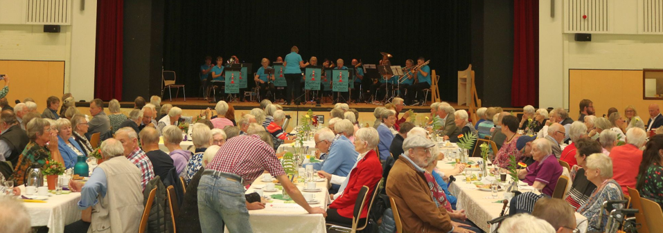 Quasi zum Saisonende hatten wir dann noch einen schönen Auftritt beim „Nachmittag der Begegnung“ in der Nordfrieslandhalle Leck. An den vollbesetzten Tischen wurde bei Kaffee & Kuchen reichlich geklönt und natürlich unserer Musik gelauscht. Bei unserer Auswahl war für jeden Musikgeschmack etwas dabei. Nach den zahlreichen Rückmeldungen hat es den Gästen und Gastgebern sehr gefallen. Das freut uns natürlich sehr und uns hat der Auftritt auch sehr viel Spaß gemacht!