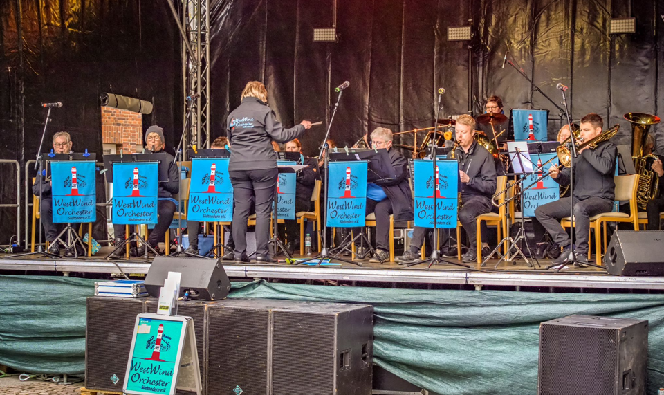 Am 04. Mai schien wieder die Sonne und wir spielten erneut auf dem Niebüller Hauptstraßenvergnügen auf der HGV-Bühne auf dem Rathausplatz. Dieses Mal musizierten wir am späten Vormittag vor der Fundsachenversteigerung. Viele Bummelnde und Schaulustige verweilten auf dem Platz und lauschten unserer Musik. Wieder ein toller Auftritt!