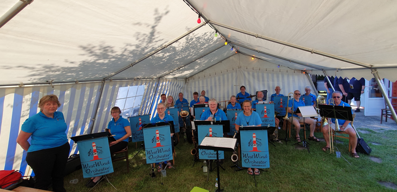 Ein besonderes Ereignis, welches wir musikalisch begleiten durften, war dann am 25. Juni ein Tauffest am Außendeich an der Südwesthörner Schleuse. Pastor Gerald Rohrmann und seine Helfer hatten sich sehr viel Mühe gemacht, die anstehenden Taufen vor diesem tollen „Ambiente“ bei guten Wetter zu zelebrieren. Für alle Anwesenden ein besonderes Erlebnis!